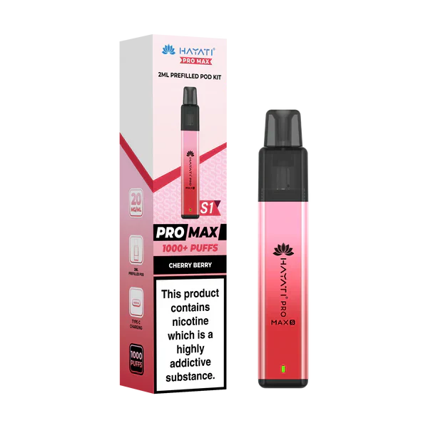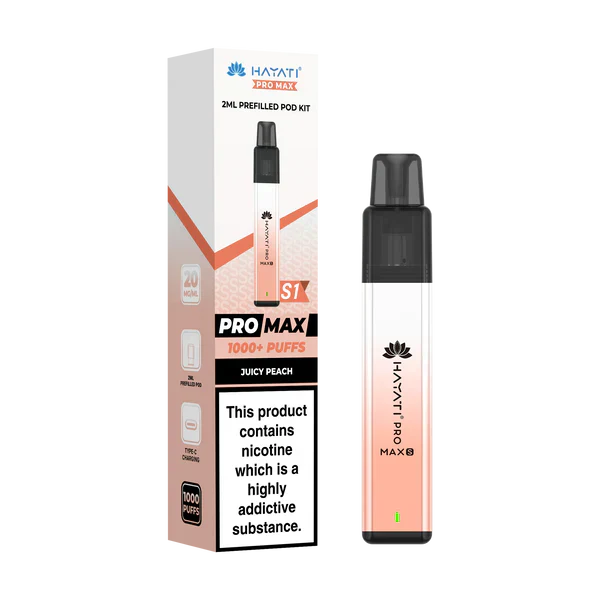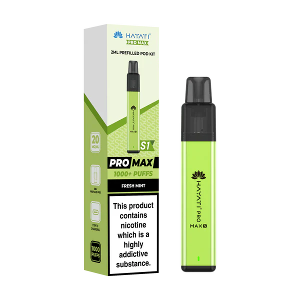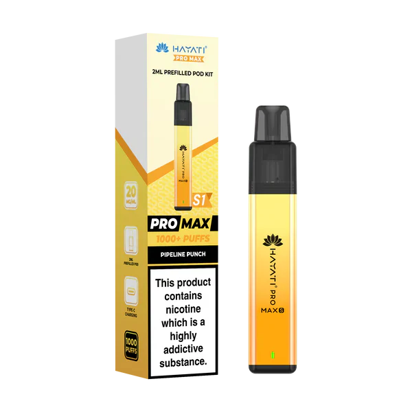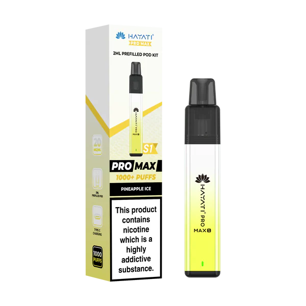 Order by 4pm for same day dispatch and next day delivery in the UK and free shipping over £15. Designed by Hayati for everyday use, the Pro Max S1 is a compact pre-filled vapour pod device that you simply snap a pod into and vape with no installation or setup needed. The advanced coil technology, lightweight zinc alloy body and 550mAh rechargeable battery ensure you always have great-tasting vapour produced at will.