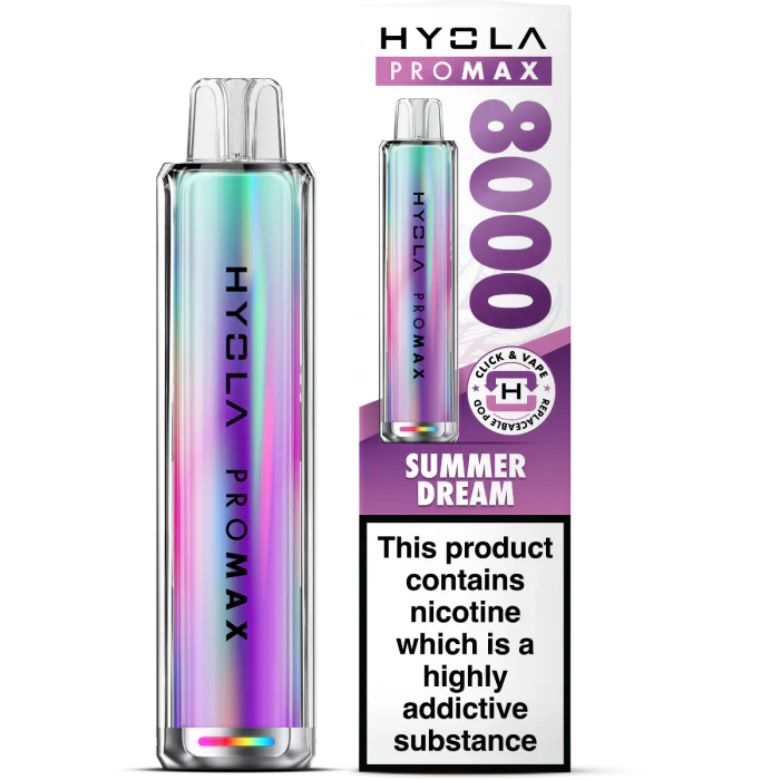 If you want a device that is more affordable and environmentally friendly than disposable vapes, the Hyola Pro Max 8000 is a great choice. It is a reusable huge puff kit. A full charge should last most vapers a whole day because to the longer-lasting 800mAh built-in battery, which can be recharged in less than an hour. This kit comes with a 2ml pod and an 8ml refill container that are both prefilled with a 20mg nic salt e-liquid, and it can produce up to 8000 puffs. To continue using your gadget once your e-liquid runs out, simply get a new Hyola Pro Max 8000 refill pack.